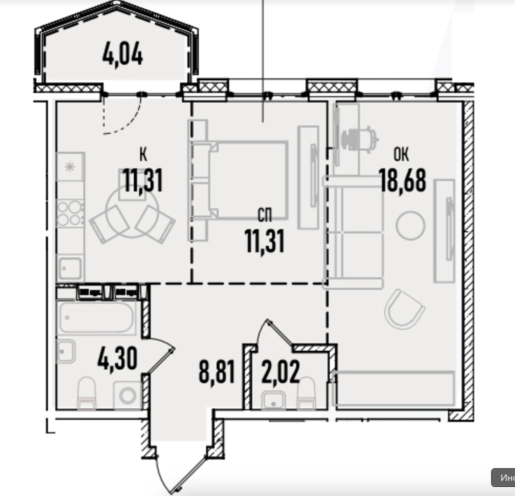 Площадь от 34.49 м2