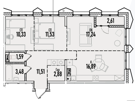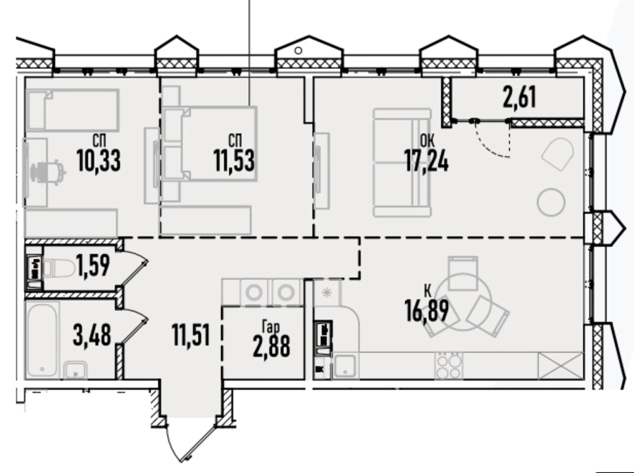 Площадь от 60.47 м2